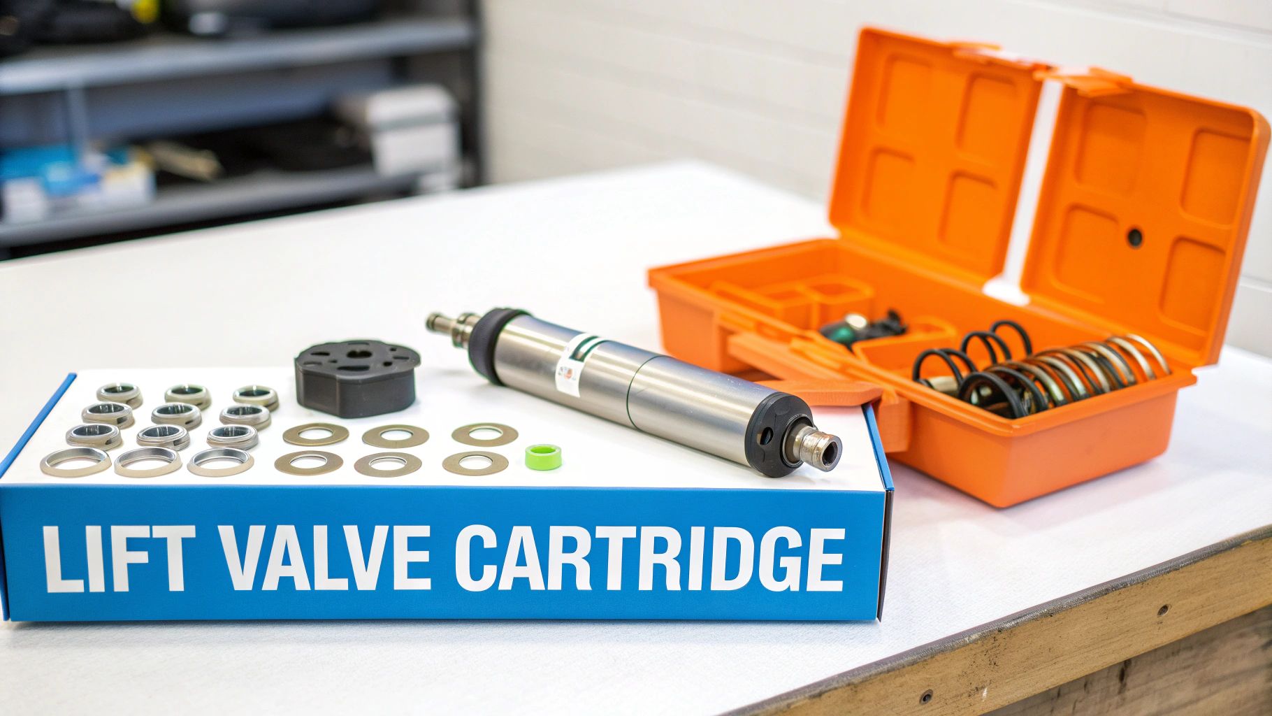 The component you need is the Lift Cylinder Holding Valve Cartridge. Waiting for a dealer means 6-8 weeks of downtime while the part ships from China. That's unacceptable.